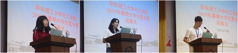 学习。随后,班主任代表李宇璇、营员代表郑州大学钟嘉怡和中国石油大学司道润发言。李宇璇表示三天班主任工作虽然辛苦,但收获很大,相信明年这个时候,华理会变得更美、更新,希望同学们能在这美好的环境中学习、奋进;营员们感谢华理为他们作的精心准备,感谢教授们和工作人员的辛勤付出,表示这次夏令营的举办能让他们全方位、深层次、近距离的了解华理化工,更坚定了来华理读研的决心和信心,相信这是一个“不悔的选择”。闭幕式最后,所有营员和老师共同观看本次夏令营的花絮视频,分享其中的欢笑和收获。至此,金沙娱乐场-金沙娱乐场app
