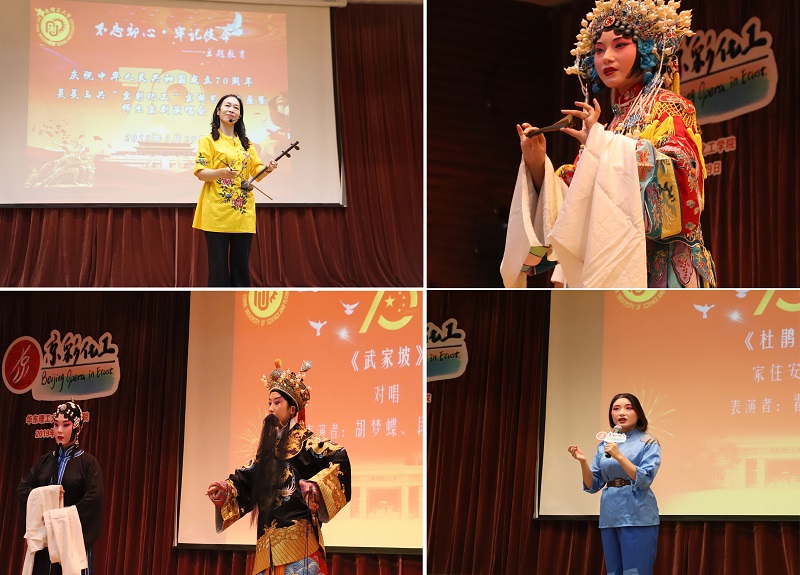 在奉贤校区敬贤堂举办美美与共“京彩化工”京胡艺术讲座暨师生京剧演唱会,以一场传统文化盛宴为祖国70华诞庆生。上海京剧院国家一级琴师周晓铭受邀带来精彩的京胡艺术讲座。闵行区政协委员、闵行区京剧票友协会会长余剑强,党委副书记高艺霞,校工会京剧社社长李廷雨、金沙娱乐场