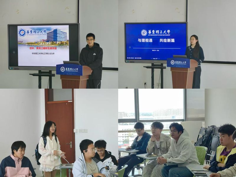 随后,两位优秀的老乡学姐学长分享了各自的学习与成长经历。2022级代言同学目前已顺利保研至本校。结合自己从“不适应”到“找对节奏”的转变过程,建议学弟学妹们尽早探索合适的学习方法、主动获取信息、弥合信息差,并祝愿大家学有所成、行有所得。2019级庄力齐同学目前在我校硕博连读,他回顾自己在华理求学的六年生涯,鼓励新生不仅要善用各类学习资源,还应积极发展兴趣爱好,全面提升综合素质,希望学弟学妹们能自律且充实地度过大学生活。在互动交流环节,同学们围绕“大类招生专业分流、创新创业实践、毕业去向”等话题踊跃提问,参会老师们逐一作出细致解答。
